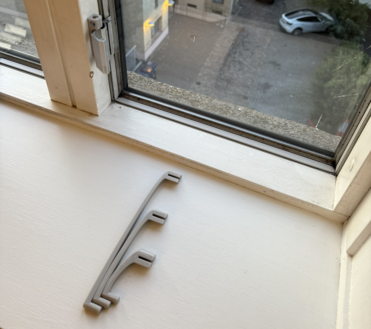 Siden jeg flyttede ind i 2021, har jeg oplevet udfordringer med at holde mine vinduer åbne. For nyligt gik jeg i gang med at designe en løsning, og det udviklede sig hurtigt til et færdigt produkt. Jeg er selv meget tilfreds med resultatet, som både fungerer rigtig godt og er nemt at bruge. Jeg anvender hasperne i alle mine vinduespartier og nyder virkelig fordelene ved dem.